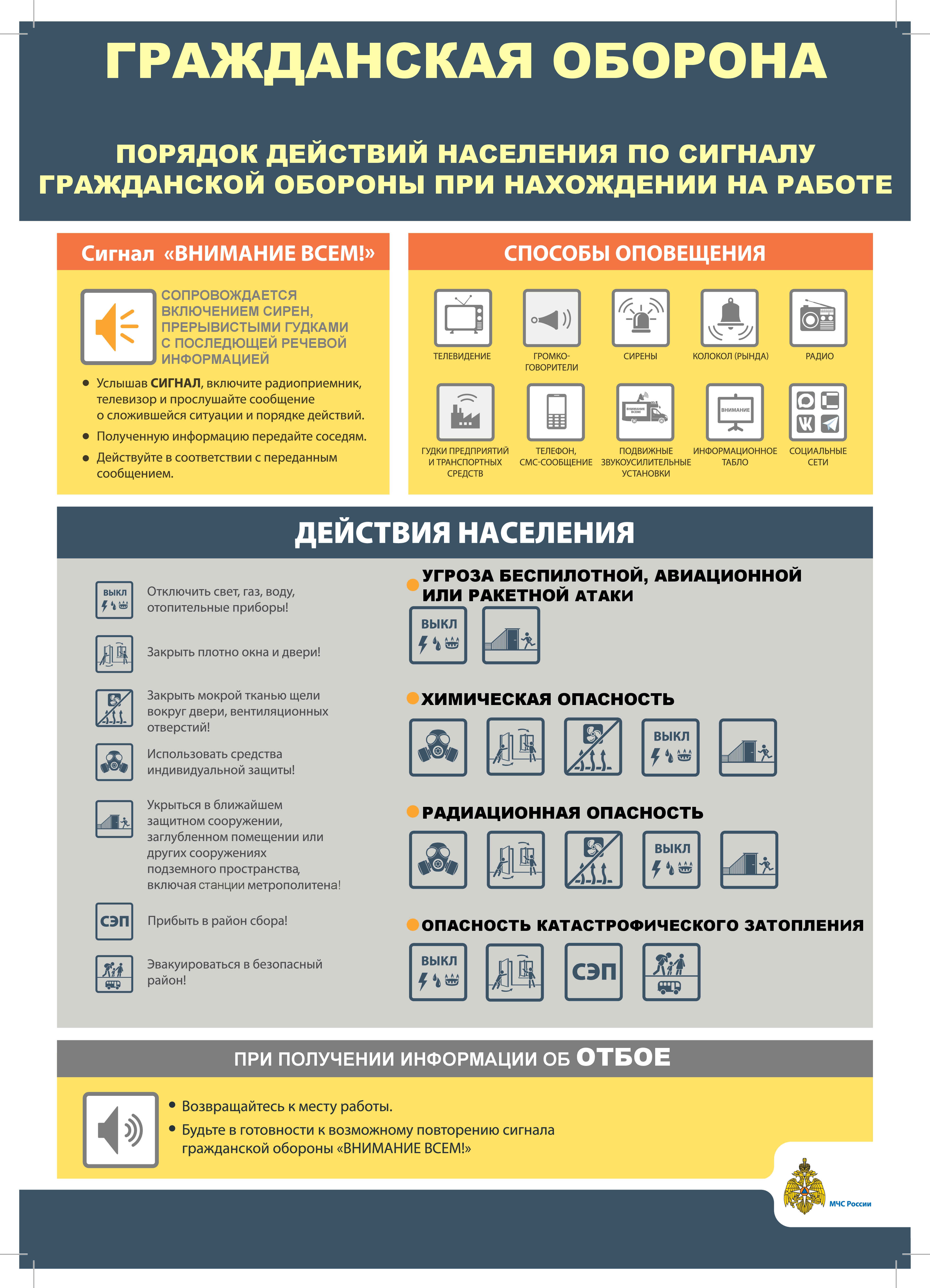 ПОРЯДОК ДЕЙСТВИЙ НАСЕЛЕНИЯ ПО СИГНАЛУ ГРАЖДАНСКОЙ ОБОРОНЫ ПРИ НАХОЖДЕНИИ НА РАБОТЕ